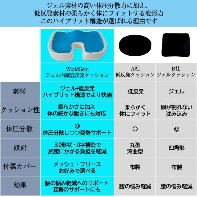 【月間ランキング1位獲得!】 クッション 椅子用 ジェル+低反発タイプ 低反発 ジェルクッション ゲルクッション 腰痛対策 骨盤矯正 ギフト デスクワーク 座布団 大きい クッションシート 椅子 車 骨盤クッション