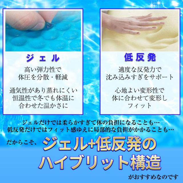 体重を分散させる性能が高いジェル素材と適度な柔らさを持つ低反発を両方を効果的に取り入れることで、より快適な時間を過ごすためのサポートをします。