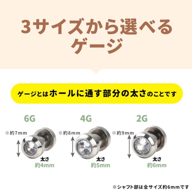 ジュエル トンネル ピアス 2G 4G 6G サージカルステンレス ジュエル シルバー イヤーロブ 拡張 ボディピアス 拡張 ラージホール