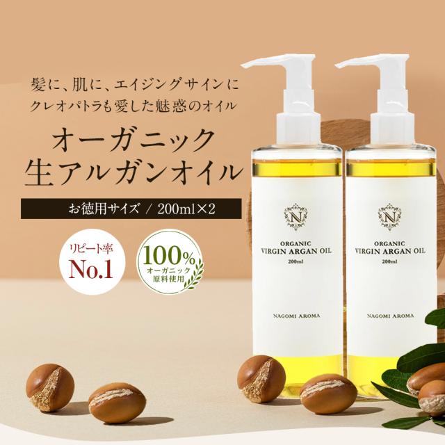 アルガンオイル 生 オーガニック 200ml×2個セット 送料無料 ヘアオイル キャリアオイル マッサージオイル 美容オイル ボディオイル ヘアケア