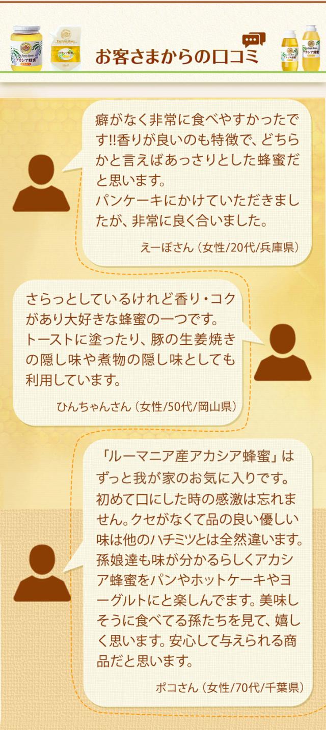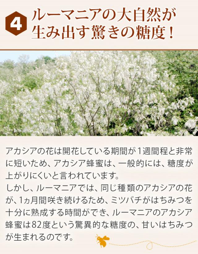 穏やかな味と香りが人気のアカシア蜂蜜。養蜂先進国として世界でも有数の養蜂技術をもつといわれるルーマニアでつくられた逸品です。