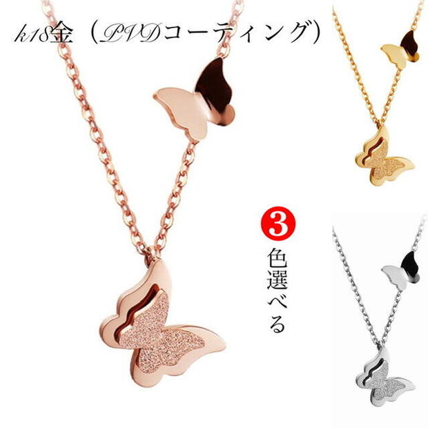 サージカルステンレス 蝶々ネックレス アレルギー対応 レディースネックレス 18K ピンクゴールド ゴールド シルバー ステンレスチェーンネックレス バタフライ 蝶々 k18 ピンクゴールドネックレス ご褒美 誕生日プレゼント カジュアル かわいい おしゃれ クリスマス