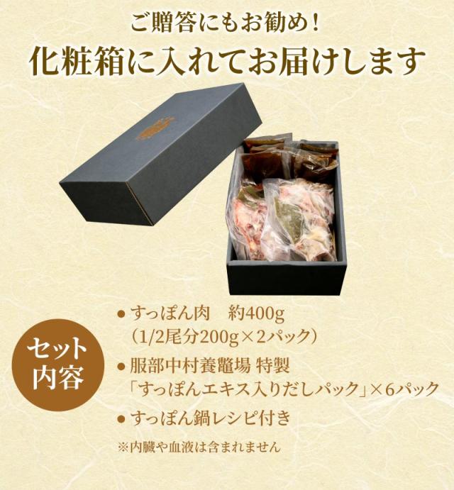 浜名湖の極上すっぽん鍋セット 400g(200g×2パック) お歳暮 ギフト 服部中村養鼈場 スッポン 服部もの 切り身 すっぽん料理 すっぽん鍋 贈り物 ギフト 内祝い 高級 送料無料