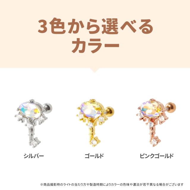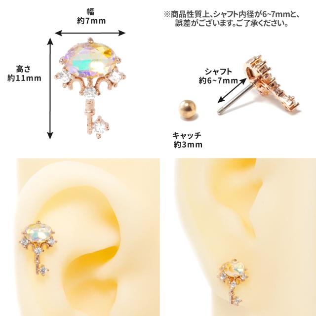 キー ジュエル オーロラストーン ストレートバーベル 14G 16G 18G 20G サージカルステンレス ジルコニア ジュエル シルバー ゴールド ピンクゴールド イヤーロブ 軟骨ピアス ボディピアス キー ストーン オーロラ