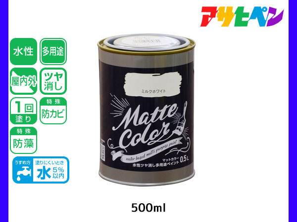 アサヒペン 水性ツヤ消し多用途ペイント マットカラー 500ml (0.5L) ミルクホワイト 塗料 ペンキ 屋内外 1回塗り 低臭 木部 鉄部 壁紙