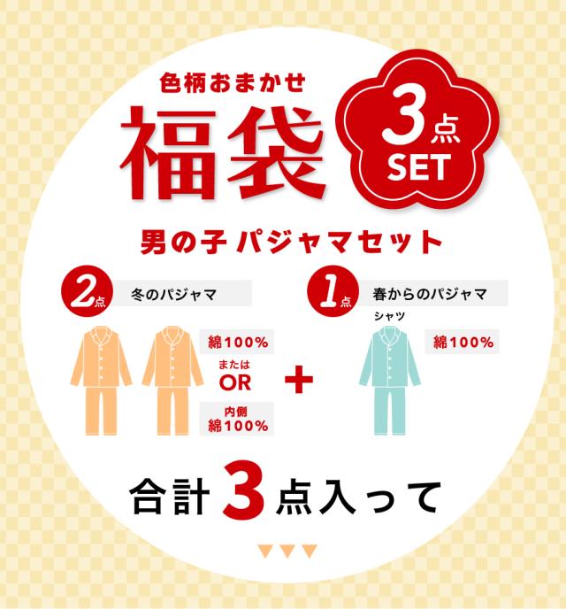パジャマ キッズ 男の子 福袋 綿100% 3点セット 冬ネル起毛2点と春パジャマが1点入ったお得な3点セット 100 110 前開き 子供 ボーイズ ジュニア