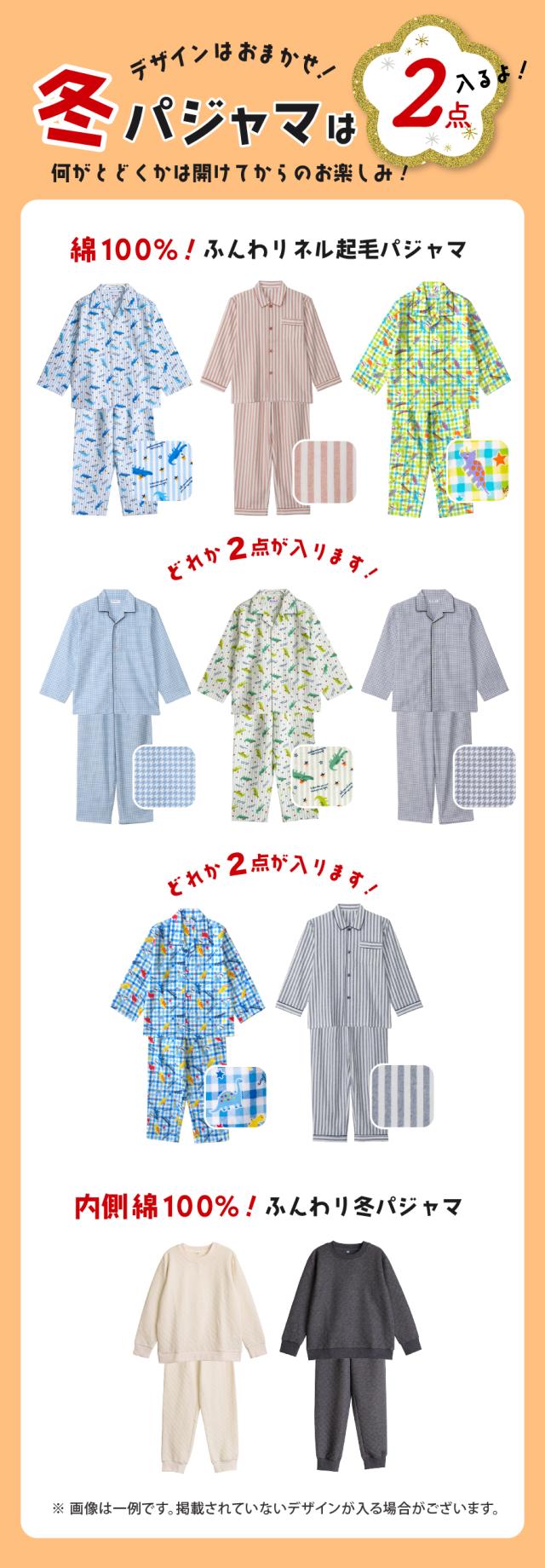 【どれか2点が入ります】 ・綿100% 冬のふんわり起毛前開きパジャマ