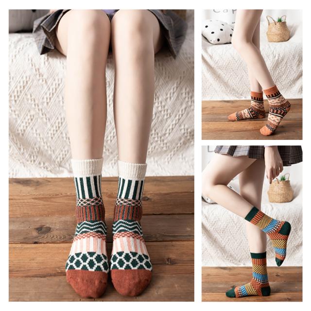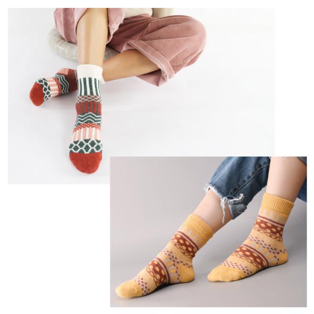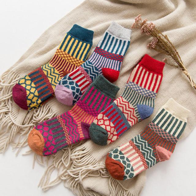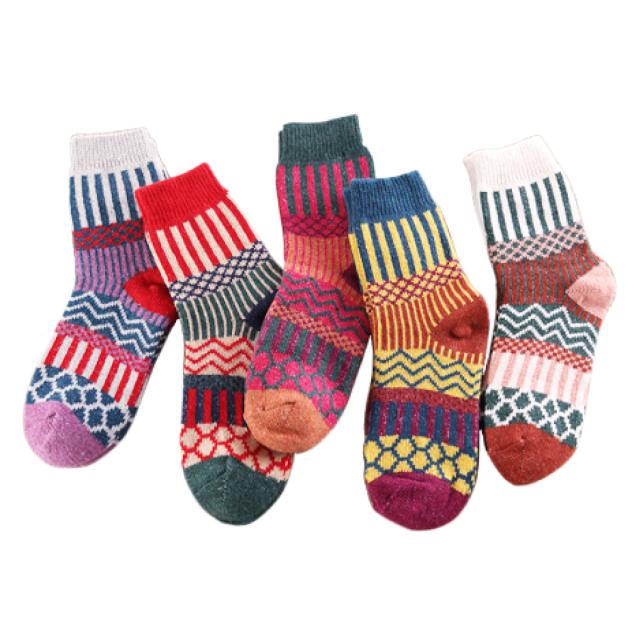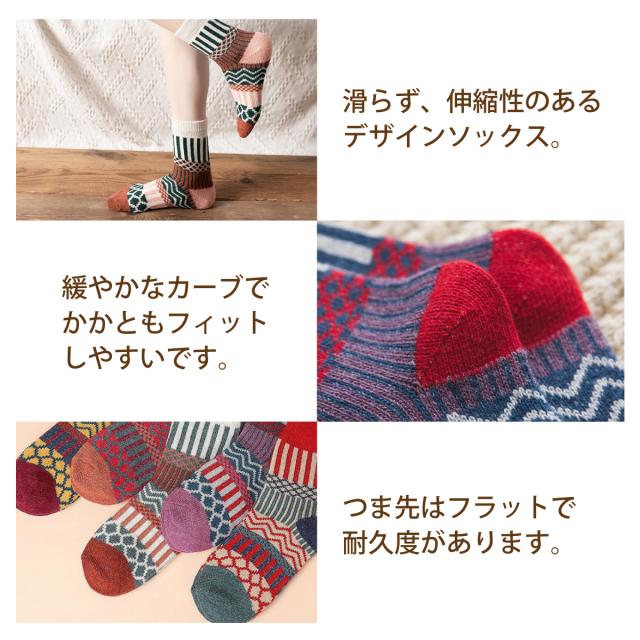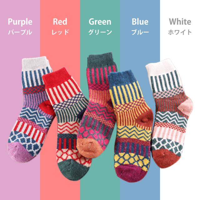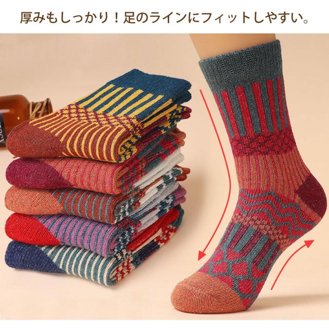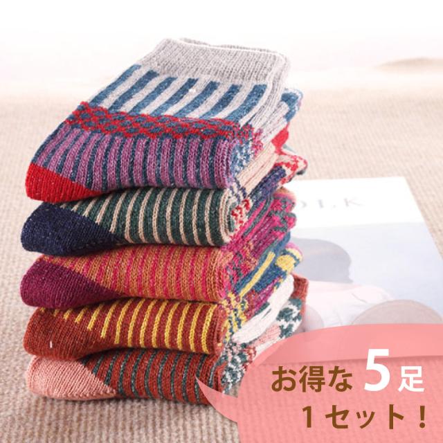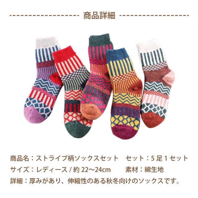 レディース 靴下 ストライプ柄 5足セット ソックス 暖かい おしゃれ ロークルー カラフル 大人 かわいい 冷房対策 保温 厚手 防寒対策 冷え 冷え性対策 socks04