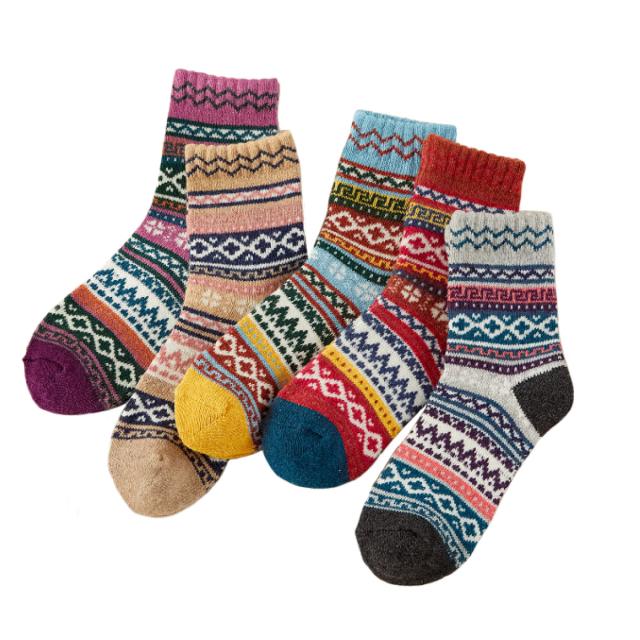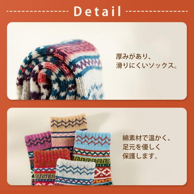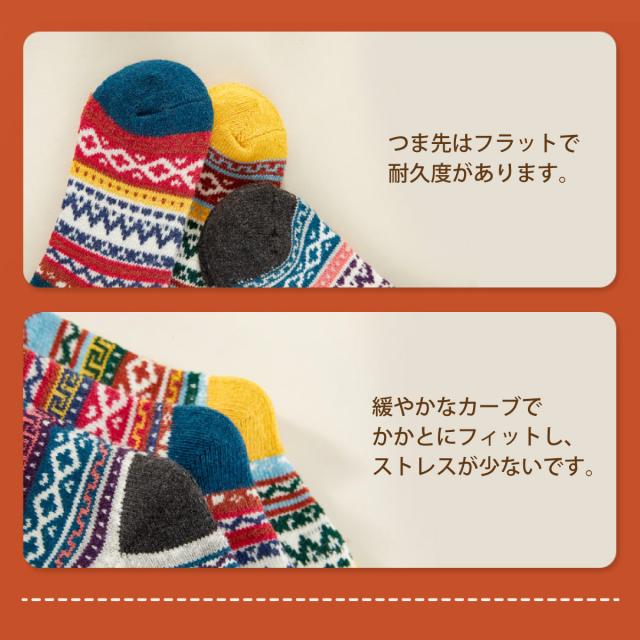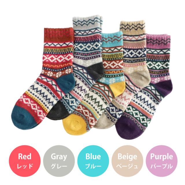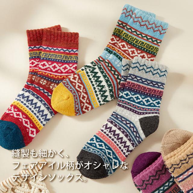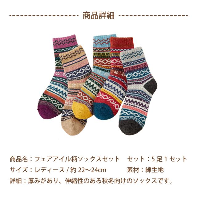 レディース 靴下 フェアアイル柄 5足セット ソックス 暖かい おしゃれ ロークルー カラフル 大人 かわいい 冷房対策 保温 厚手 防寒対策 冷え 冷え性対策 socks05 sh_of
