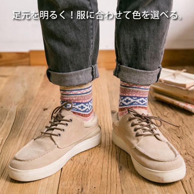 温かみのある服に合わせやすいフェアアイル柄ソックスです。