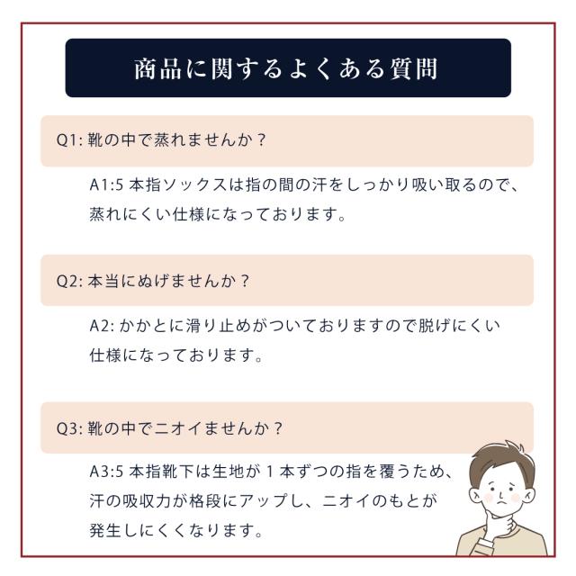 5本指靴下は1本ずつ指を覆うため、汗の吸収力が格段にアップ!