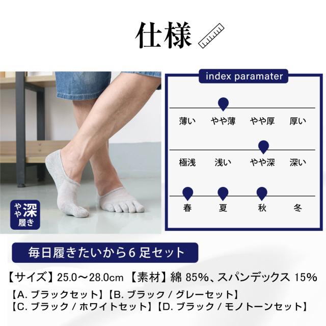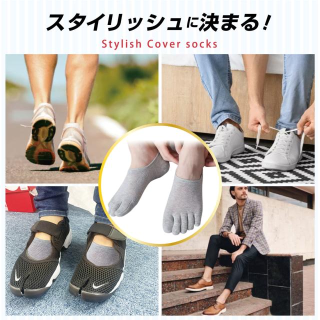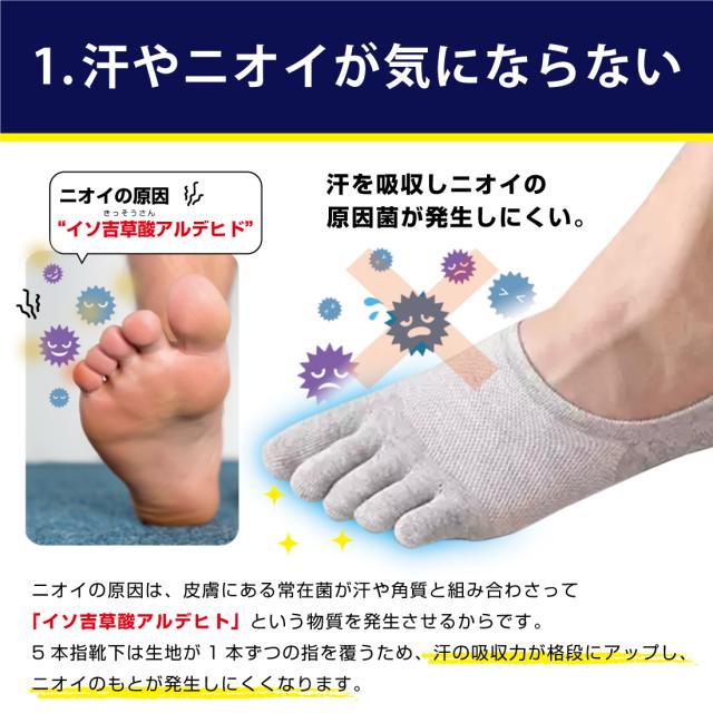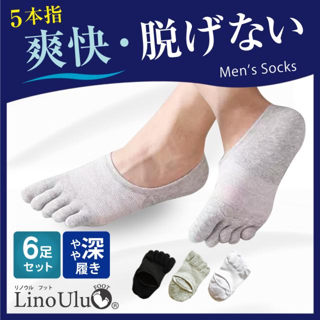 [6足セット] 5本指 ソックス メンズ ショート 靴下 脱げない フットカバー メッシュ 汗 ニオイ 外反母趾 対策 減菌 消臭 効果 スポーツ ビジネス 通勤 通学 スニーカー おすすめ おしゃれ カジュアル シンプル 薄手 綿 コットン 春 夏 秋 リノウル