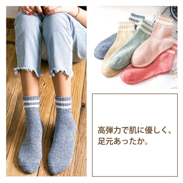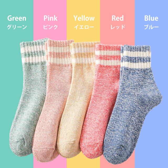 レディース 靴下 ラインソックス 5足セット ソックス 暖かい おしゃれ ロークルー カラフル 大人 かわいい 冷房対策 保温 厚手 防寒対策 冷え 冷え性対策 socks07