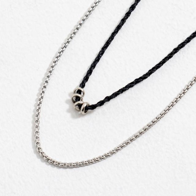 コードとチェーンの2連ネックレス。