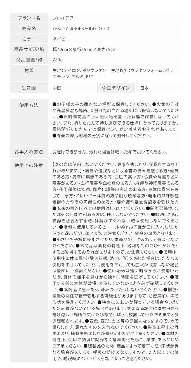 商品名:かぶって寝るまくら IGLOO 2.0