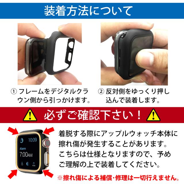 ※着脱する際にアップルウォッチ本体に 擦れ傷が発生することがあります。 こちらは仕様となりますので、予め ご理解の上で装着してください。擦れ傷による補償・修理は一切行えません。