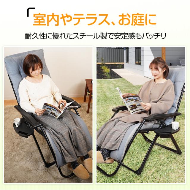 新生活 リクライニングチェア 折りたたみ 椅子 一人用 クッション サイドテーブル ドリンクホルダー アウトドア キャンプ レジャー 角度調整 屋外 od533