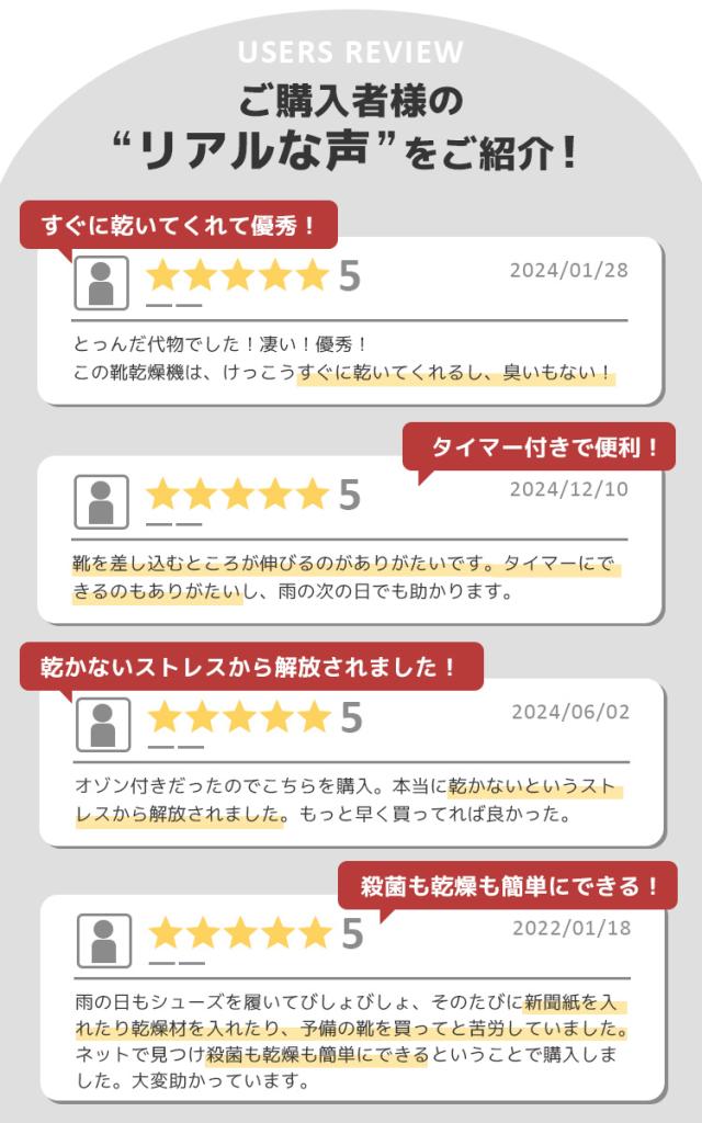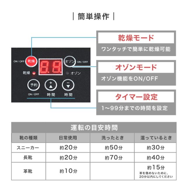 - 電気屋で見た時には、布団乾燥機機能がメインで、値段が高かったです。 これは、値段も手頃だし、靴をズボッと挿せるから、とーっても使いやすいです!