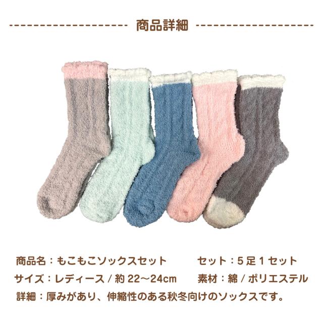 レディース 靴下 もこもこソックス 5足セット ソックス 暖かい おしゃれ ロークルー カラフル 大人 かわいい 冷房対策 保温 厚手 防寒対策 冷え 冷え性対策 socks06 agesugi_sfa