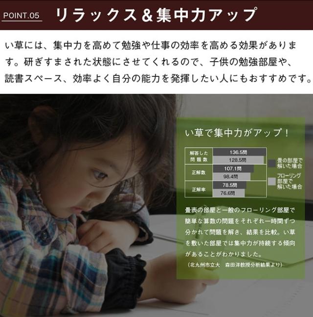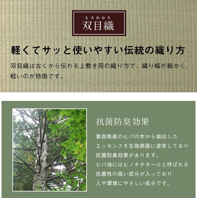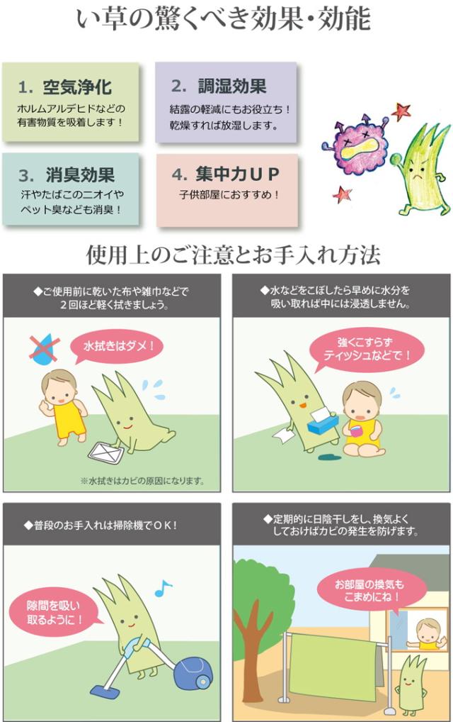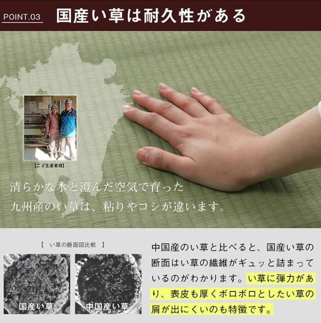 | 材質 | 素材:九州産のい草(双目織) ヘリ:ポリプロピレン、ポリエチレン |