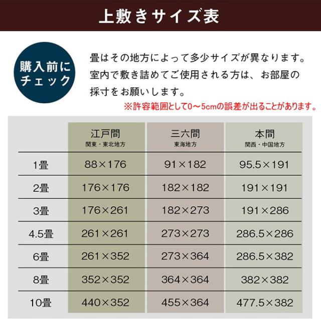 | サイズ | 本間3畳(約191×286cm) |