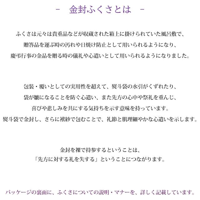 紫色の金封ふくさは、冠婚葬祭・慶弔兼用で、男女問わずお使い頂けます。