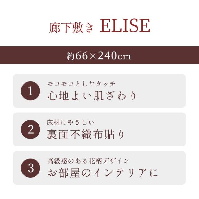 廊下敷き エリーゼ ラグ 66×240cm 長方形 キッチンマット ラグマット 不織布 花柄 フラワー オシャレ 高級感 上品