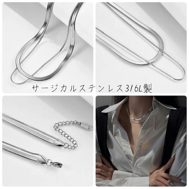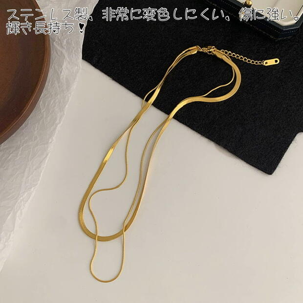 新作商品 お洒落 高級感 華奢 上品 存在感があり ステンレス316l製 2連 スネークチェーン チョーカー ネックレス