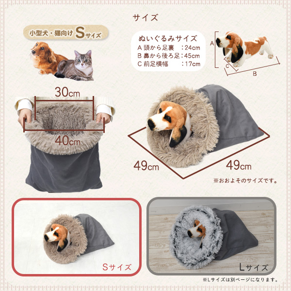 小型犬 猫向き 寝袋ベッド Sサイズ