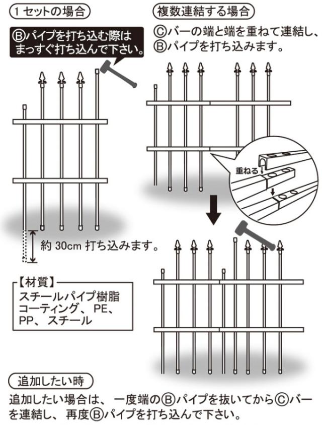 パイプを打ち込むだけで簡単に設置できるお手軽フェンス。 連結も可能です。 お庭のアクセントや花壇のデコレーションに最適です。 |