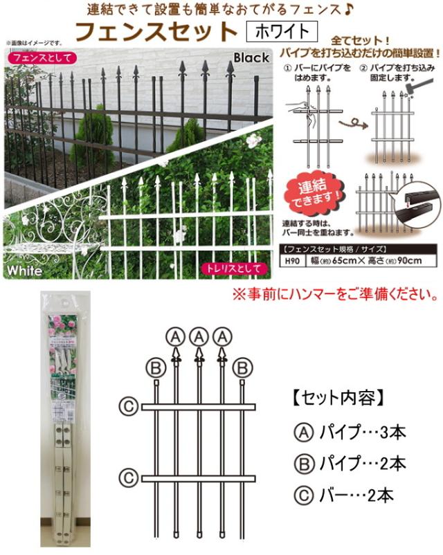 フェンスセット 高さ90cm ホワイト ガーデン ガーデニング 家庭菜園 フェンス トレリス 支柱 簡単 便利 簡単設置 玄関