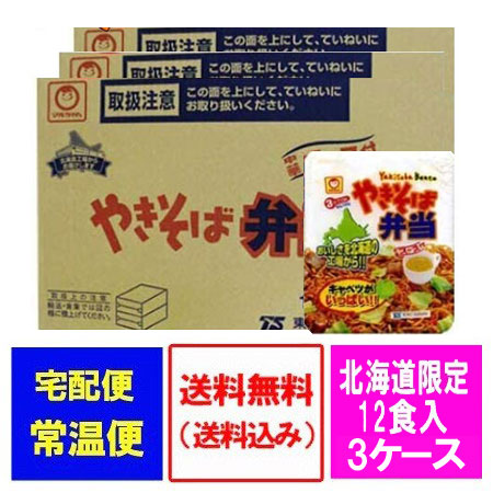 マルちゃん カップ麺 送料無料 やきそば弁当 北海道製造 東洋水産 マルちゃん 焼きそば弁当 北海道限定 中華スープ付 12食入 3ケース(3箱) カップ麺 箱買い 焼きそばカップ麺 麺類