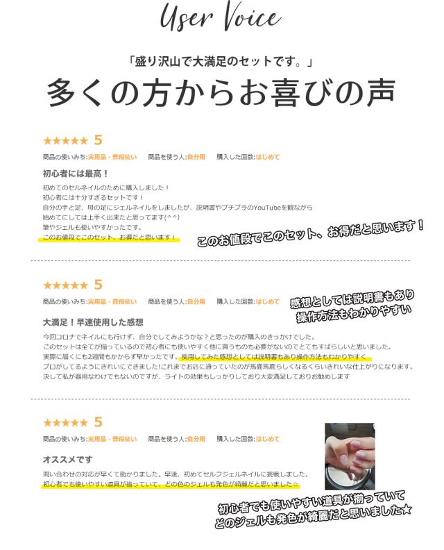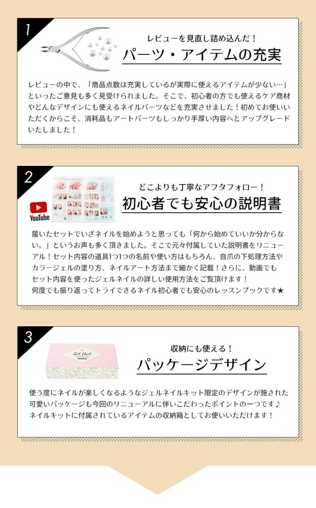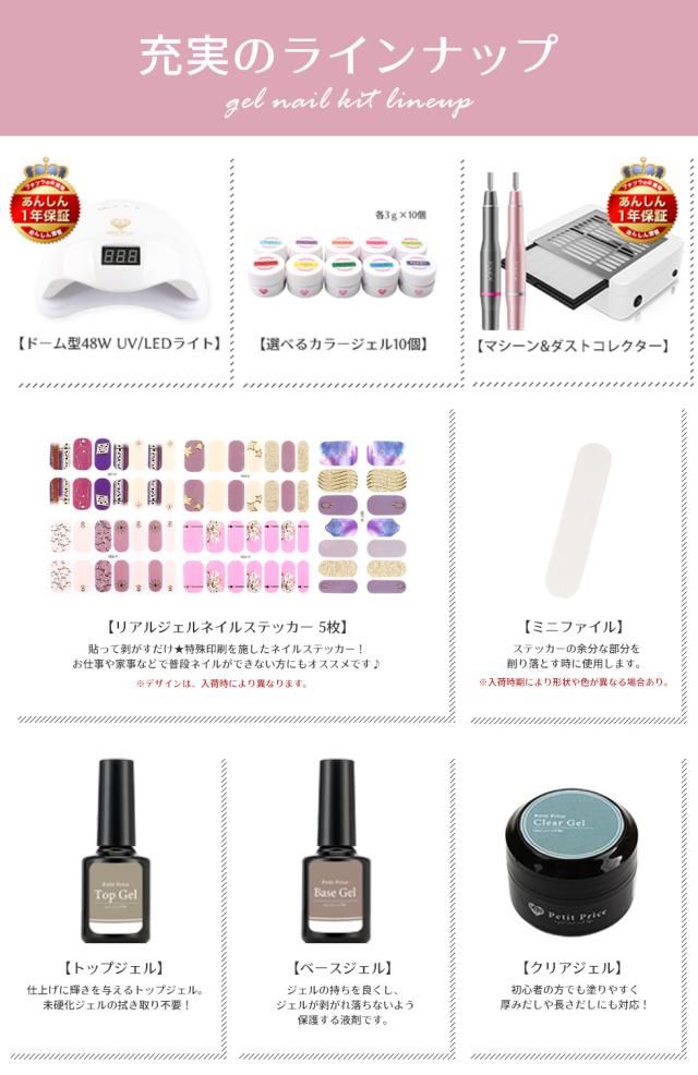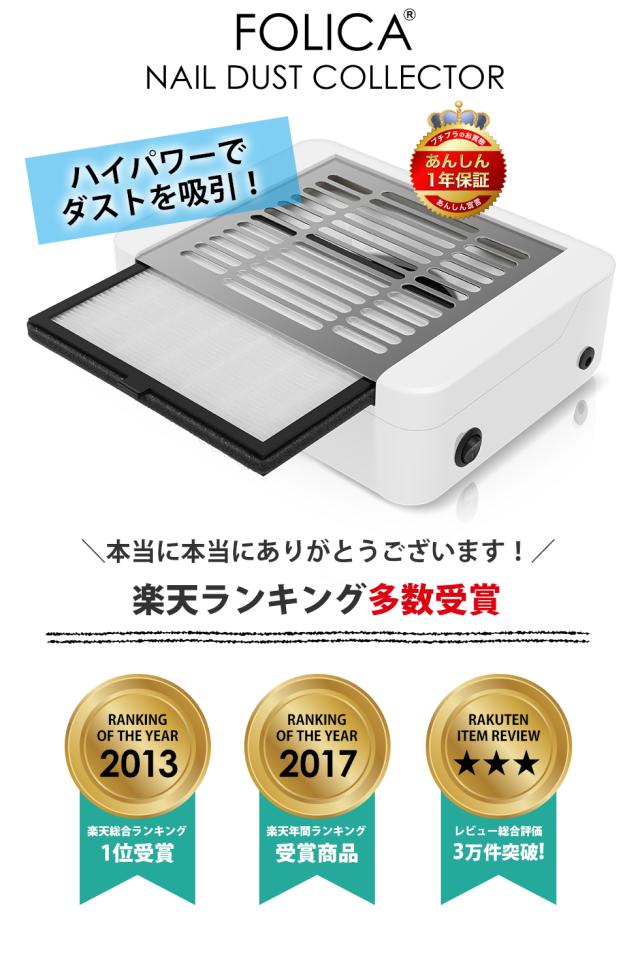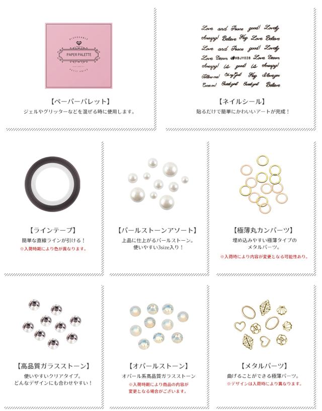 | 内容量 | プチプラカラージェル3g×10 FOLICAネイルマシーン FOLICAダストコレクター クリアジェル/トップジェル/ベースジェル クレンザープラス/ジェルリムーバー リアルジェルネイルステッカー/キューティクルニッパー/ツイーザー ネイルワイプ/ジェルブラシ/ブラシスタンド/ネイルワイプ スポンジバッファー/ブラックネイルバッファー/ホワイトネイルバッファー/ウッドスティック メタルプッシャー/スパチュラ/シリコンプッシャー/甘皮カッター/ネイルフォーム/ストーンケース/ペーパーパレット/ネイルシール/ラインテープ パールストーンアソート/丸カンパーツ/ガラスストーン/オパールストーン/メタルパーツ/メタルスタッズ3種 |