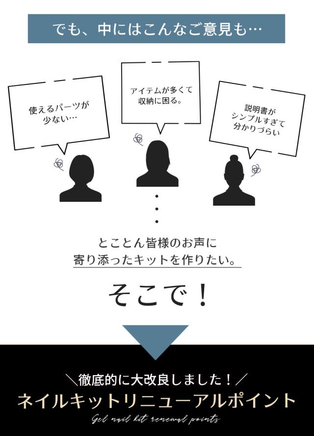 | 商品説明 | お客様の声を元に徹底的にセット内容を大改良!! ジェルネイルを始めるために必要なもの全部入り!! お家に届いてすぐに始められる♪ マシーン&ダストコレクター付き297点セルフジェルネイルスターターキット 詳しい説明書なので ジェルネイルが初めての方でも安心して始められます。 |