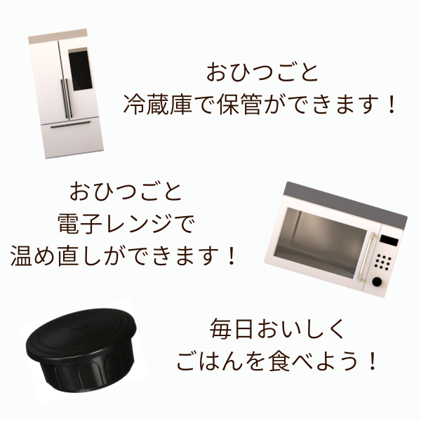 おひつくんに入れて、冷蔵庫で保存ができます。
