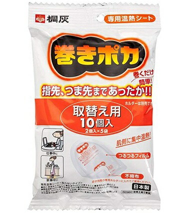 桐灰カイロ 巻きポカ 取替え用 10個入 きりばい おすすめカイロ 巻くタイプ ミニサイズ 6時間持続 セット商品 在宅ワーク 防寒対策 省エネ 寒さ対策 野外作業 キャンプ アウトドア 防寒 手先 つま先 冷え性対策 受験勉強 詰め替え用