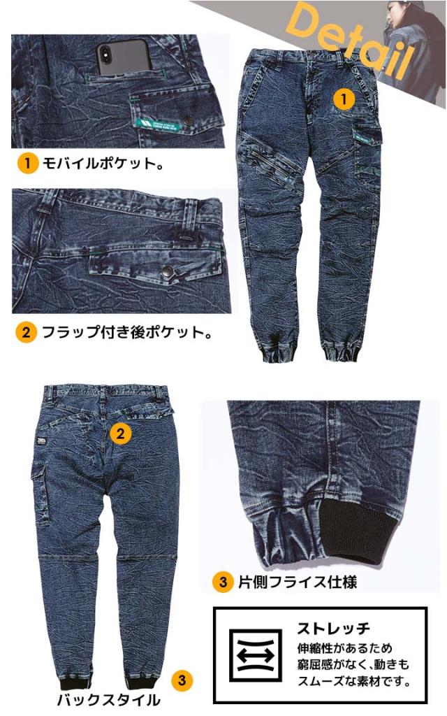 寅壱 デニムカーゴジョガーパンツ 8920-235 ストレッチ フィット感 ズボン オールシーズン 作業服 作業着 トライチ