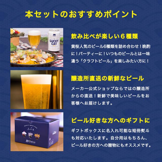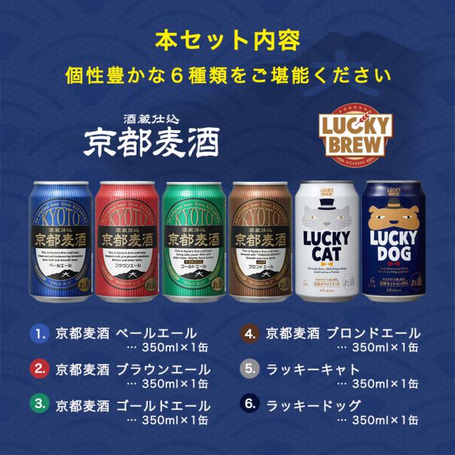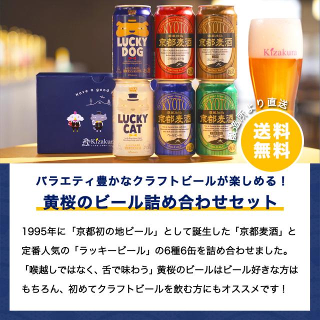 黄桜定番人気のクラフトビール「ラッキーシリーズ」2種類と「京都麦酒」4種類の計6種6缶飲み比べセットです。全国どこでも送料無料でお届けしますので、黄桜のビールを始めて試す方にオススメです。