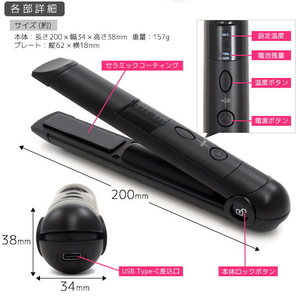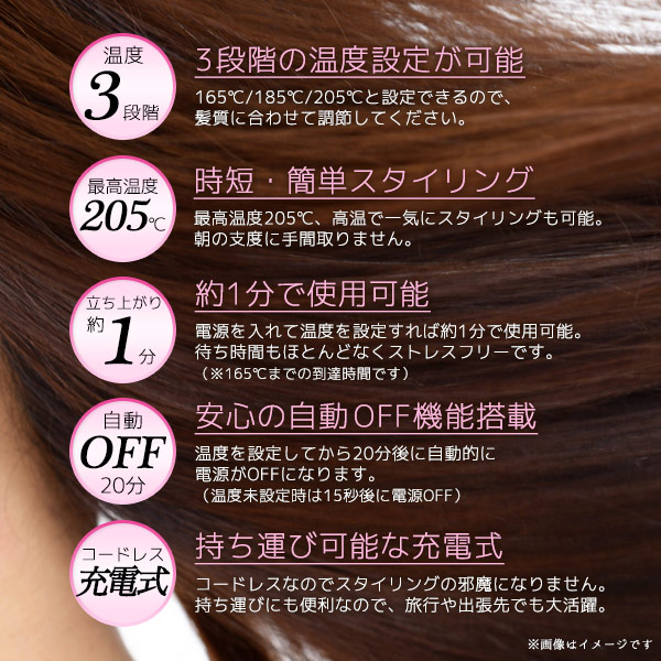ヘアアイロン 充電式 コードレス ミニヘアアイロン 持ち運びに便利 小型 ヘアーアイロン ストレート ワンカール 簡単 ヘアセット 新生活 家電 ヘアケア家電 スタイリング アイロン ストレートアイロン 時短 梅雨 髪 うねり対策 自動OFF機能 プラタ製 株式会社プラタ コテ