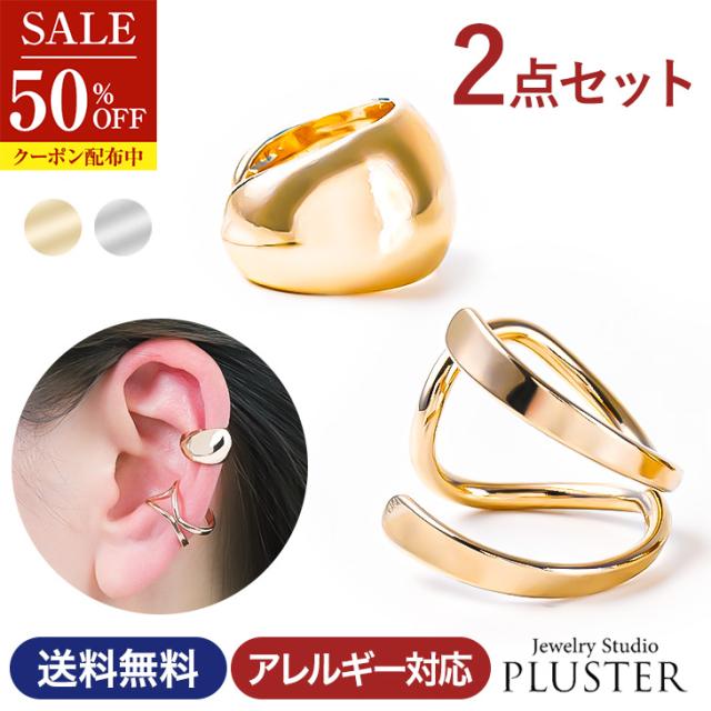 半額 イヤーカフ レディース 2点セット 金属アレルギー対応 イヤリング イヤカフス イヤカフ ノンホールピアス 大ぶり シンプル はさむ 18K ゴールド シルバー プラチナ K18 痛くない クリスマス プレゼント 女性 アクセサリー ジュエリー アクセサリー