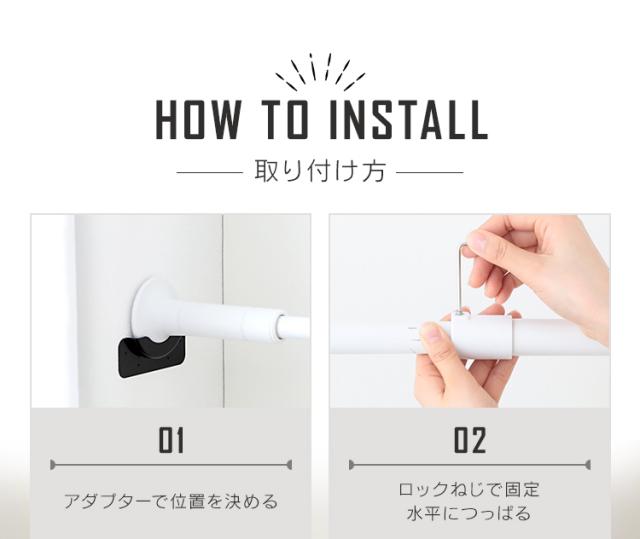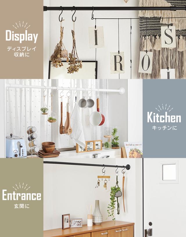 伸縮棒に引っ掛けるフックはホワイトとブラックの2COLOR。