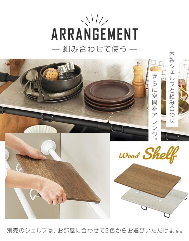 別売りの木製シェルフと組み合わせて、さらに空間をアレンジできます。