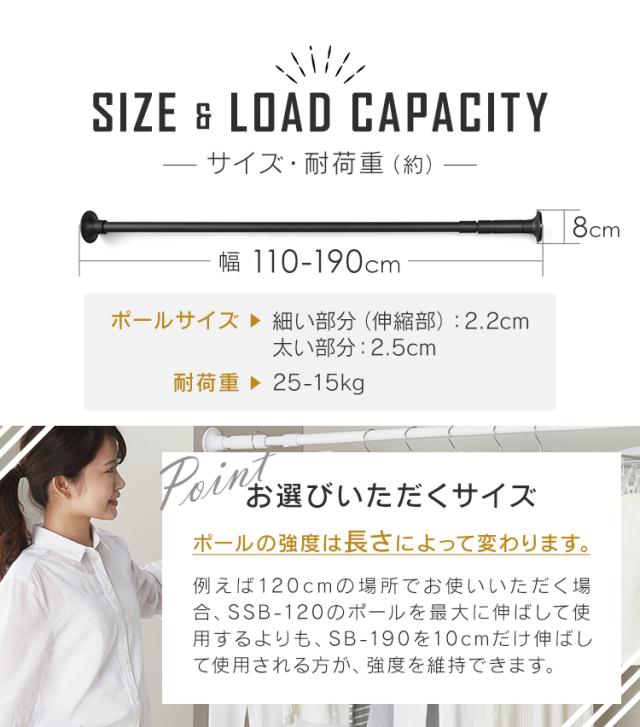 ★全品対象250円offクーポン★ スタイル伸縮棒 SSB-190 突っ張り棒 つっぱり棒 ツッパリ棒 伸縮棒 突っ張り ツッパリ 棒 ポール クローゼット つっぱり 伸縮棒 見せる収納 アイリスオーヤマ