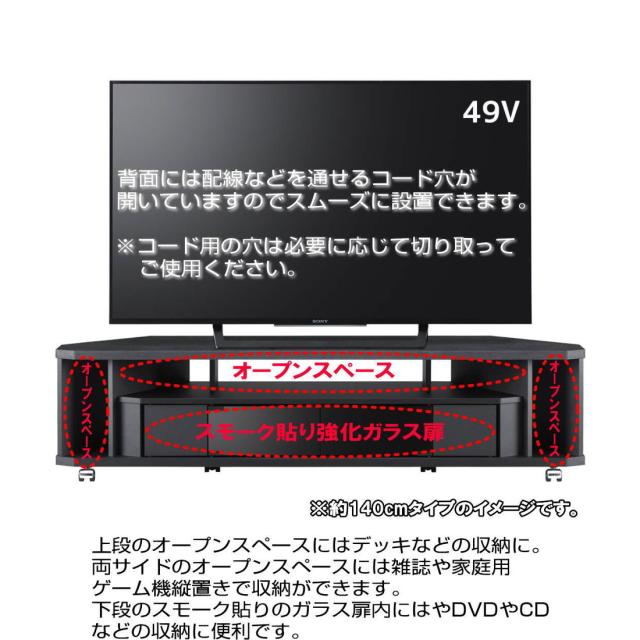 テレビ台 コーナー 三角 テレビボード 木製 60インチ 60型 対応 TV台 AVラック キャスター付き テレビラック コーナーボード ロータイプ 幅140 奥行36 高さ34.8cm おしゃれ ブラック【代引き不可】【送料無料(一部地域を除く)】