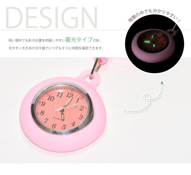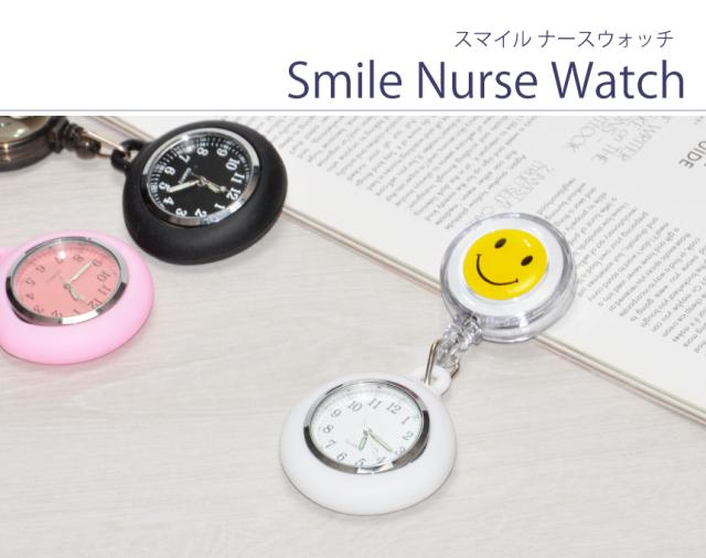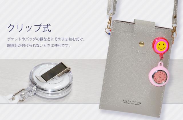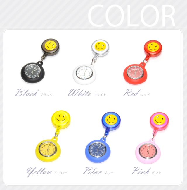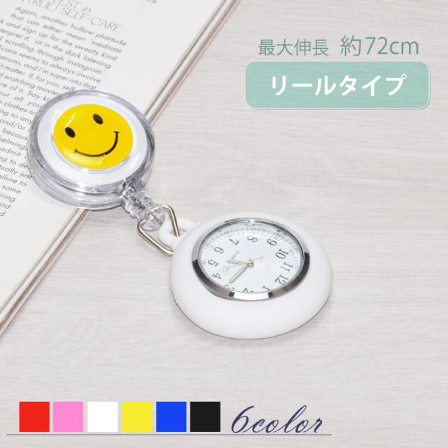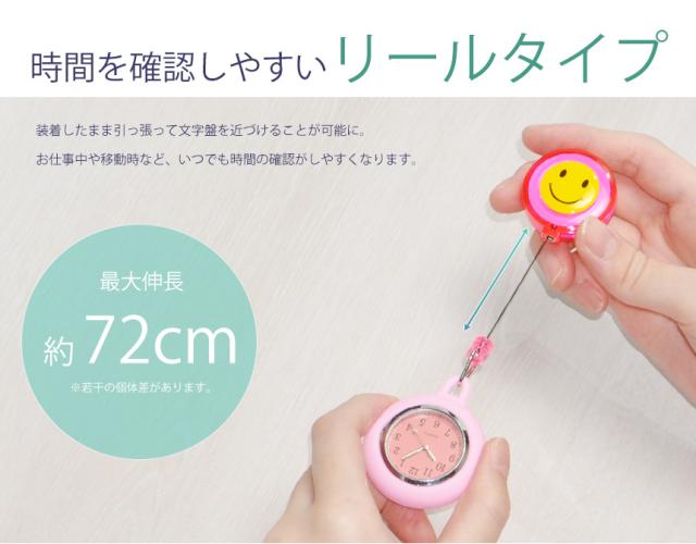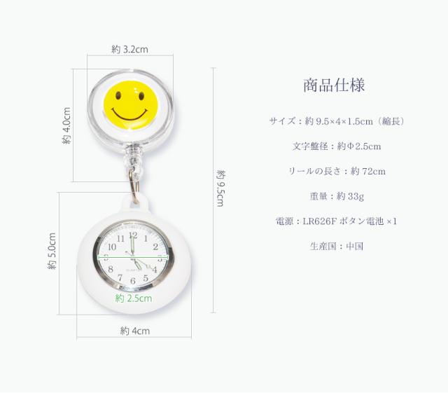 ナースウォッチ クリップ式 リール式 時計 ニコちゃんマーク クリップ 蓄光式 かわいい