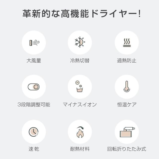 関連キーワード:ドライヤー ヘアドライヤー 速乾 恒温ヘアケア 大風量 温度調整 時短 軽量 折りたたみ式 3段階調整 クリスマス プレゼント ドライヤー 大風量 速乾ドライヤー マイナスイオン 温度調節 風量調節 ヘアケア 復元ドライヤー 低騒音 低電力 日本語説明書付