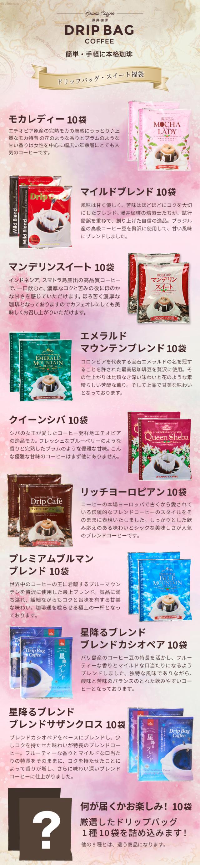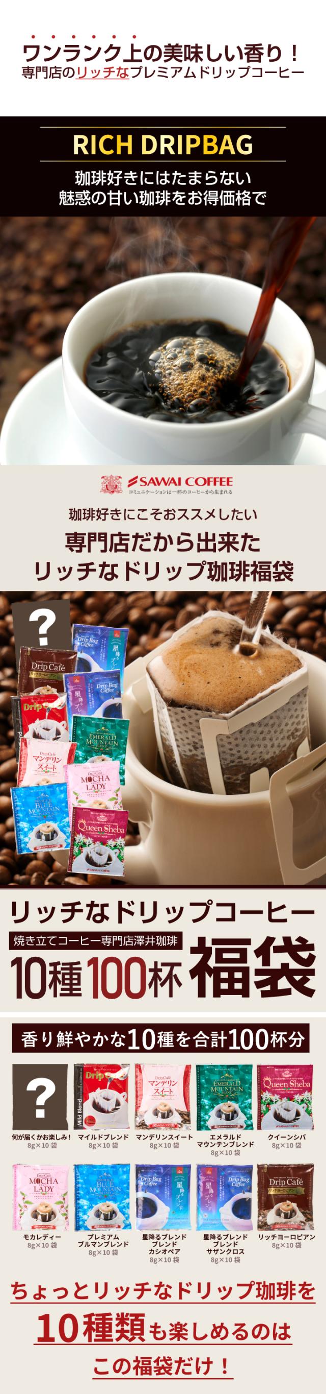 福袋 ドリップコーヒー コーヒー 100杯 ドリップ ドリップパック ドリップバッグ 100 珈琲 10種 100袋 個包装 8g 詰め合わせ 澤井珈琲 リッチなおせち