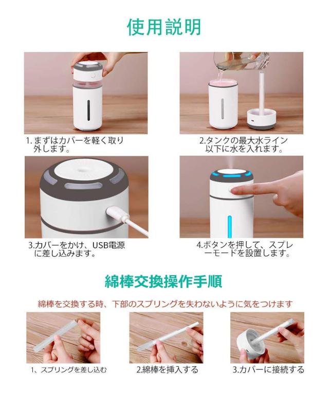 USB給電式なアロマディフューザーです。小型でシンプルなデザイン携帯に便利で、ヨガ、スパ、温泉の時に適して、使用中でも静かな低騒音仕様ので睡眠中でも、音が気にならずにご利用頂きます。