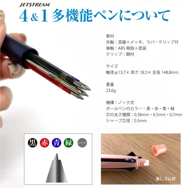 名入れ無料 ボールペン ジェットストリーム 4&1 多機能ペン 三菱鉛筆 uni MITSUBISHI PENCIL JETSTREAM 0.38mm 0.5mm 0.7mm 名入れ ペン ギフト プレゼント 卒業記念 入学祝 就職祝 誕生日 創業記念 創立記念 名前入り 記念品 父の日