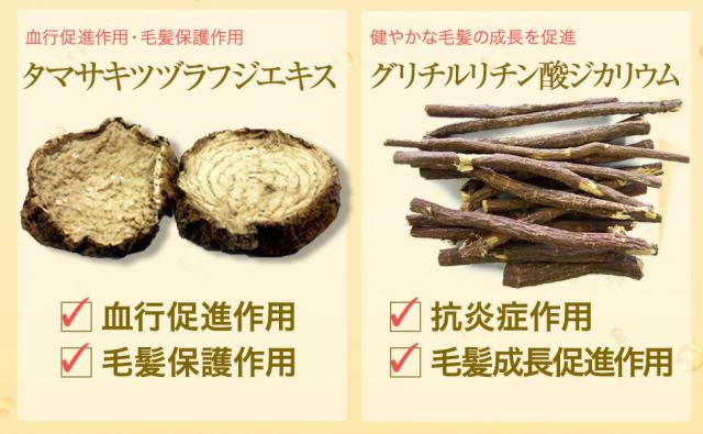 【配合成分2 2つの有効成分】![]() 有効成分タマサキツヅラフジエキスとグリチルリチン酸ジカリウム配合で艶と弾力のある強い毛髪を守り、美しい髪が生えるための健やかな頭皮を作ります。 |